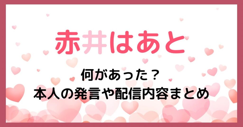 2025年10月29日0時にに、大手VTuberグループの「ホロライブ」に所属する赤井はあとさんが、突然約7時間にわたる配信を行いました。 赤井はあとさんが配信中に号泣する場面があり、「暴露配信」「限界配信」と呼ばれ、アーカイブはすぐに非公開となっていま... -