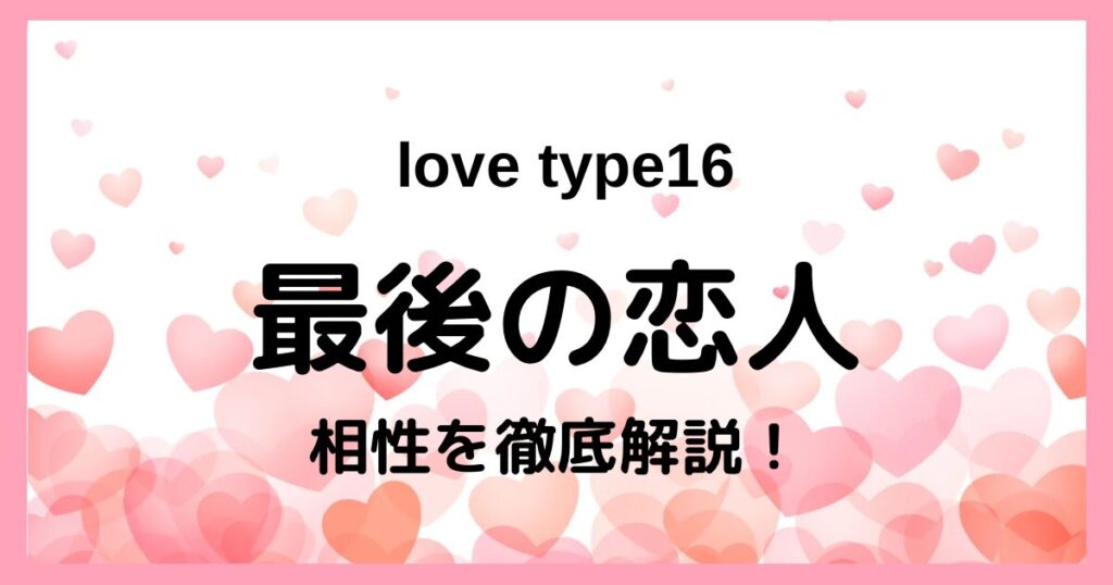 最近、無料の恋愛診断「ラブタイプ(Love Type16)診断」が流行っていますね。 その中で、最後の恋人(FAPE)との相性に徹底解説していきます。性格の特徴や恋愛傾向についても紹介しますね。 気になる方は、ご覧ください! ラブタイプ診断の「最後の恋人」と... -