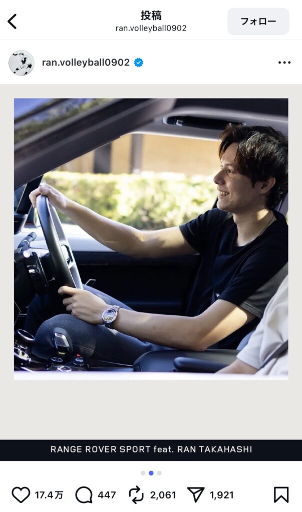 高橋藍さんの愛車は、SUV・レンジローバースポーツという高級車であると言われています。
